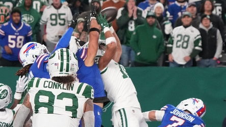 وعلى الرغم من أن أجهزة استقبال Gang Green الثلاثة التي كانت تنتظر نزول الكرة يفوق عددها خمسة أجهزة استقبال باللون الأزرق الجاموس، إلا أنها كانت جهاز استقبال واسع النطاق لـ Jets ألين لازارد الذي سقطت ذراعيه الممدودة مع كرة القدم لنتيجة غير محتملة تبلغ 52 ياردة.