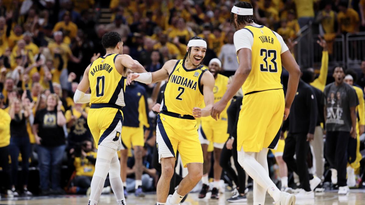 سجلت إنديانا رميتين حرتين وواصلت الفوز 111-106 لتحقق سلسلة 2-1 مع المباراة الرابعة يوم الأحد. وسجل تيريس هاليبرتون 35 نقطة وباسكال سياكام 26 نقطة لصالح إنديانا. وقاد دونتي ديفينسينزو نيكس برصيد 35 نقطة منها سبع رميات ثلاثية ليعادل الرقم القياسي في مباراة فاصلة. جالين برونسون، الذي من الواضح أنه تباطأ بسبب مشكلة في قدمه، كان لا يزال لديه 26 نقطة لنيويورك.
