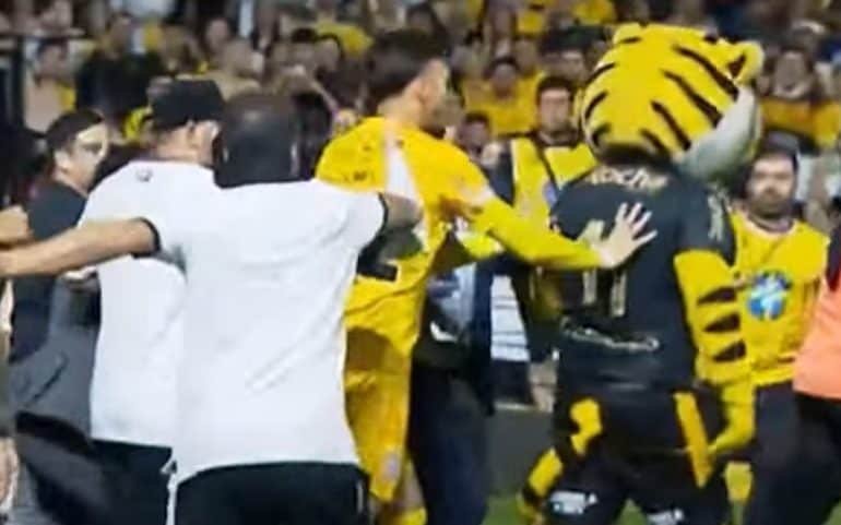 وفقًا لتقارير في البرازيل، كان هناك بعض الشجار في المدرجات بين مشجعي كورينثيانز في نهاية الشوط الأول خلال استراحة الشوط الأول. وبينما كان لاعبو الاحتياط وأعضاء الجهاز الفني يتوجهون إلى حواجز المدرجات لمحاولة المساعدة في تهدئة الوضع، كان ذلك عندما تم نقل تميمة النمر.