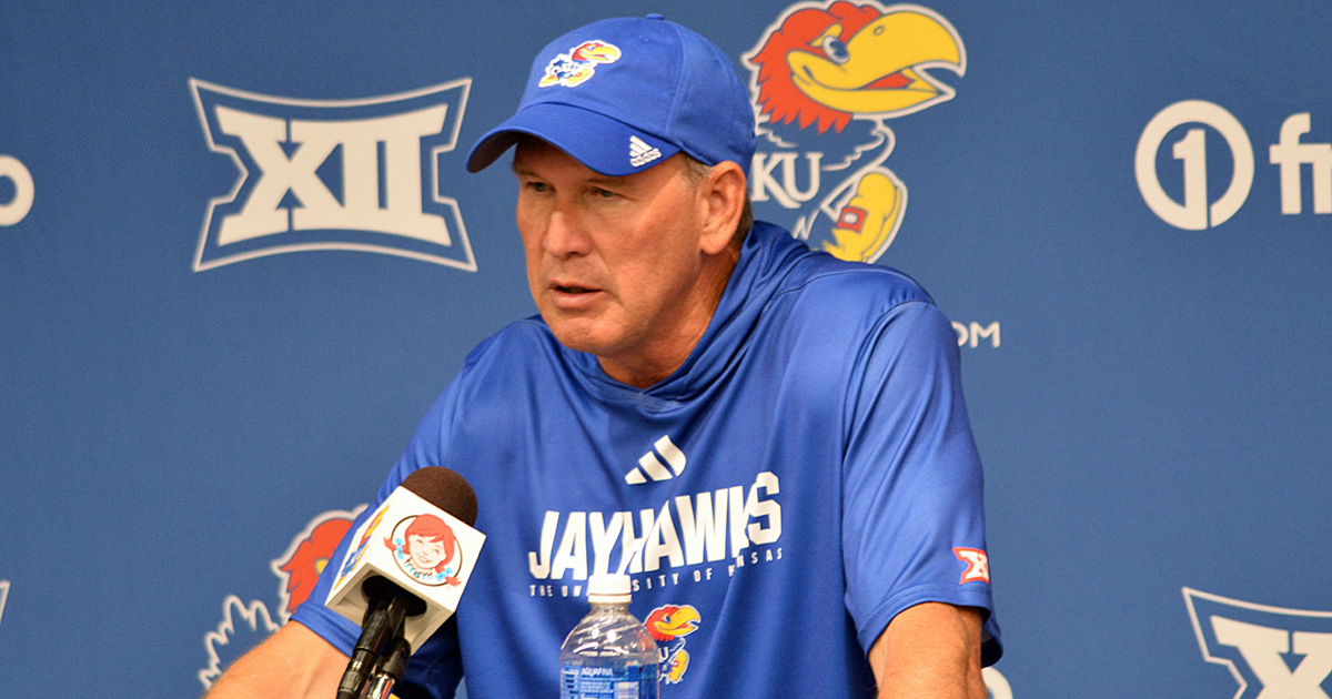 التقى لانس ليبولد ، مدرب كانساس ، وسائل الإعلام بعد أن حقق جايهوكس فوزًا رائعًا على فريسنو ستيت.