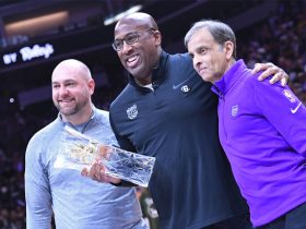 تتواصل طالبة بوتسفيل أوليفيا ويسنر (35 عامًا) مع الكرة حيث يستضيف بوتسفيل باين غروف ، الثلاثاء ، 1 أبريل 2025. (ماثيو بيرشال/محرر الوسائط المتعددة)