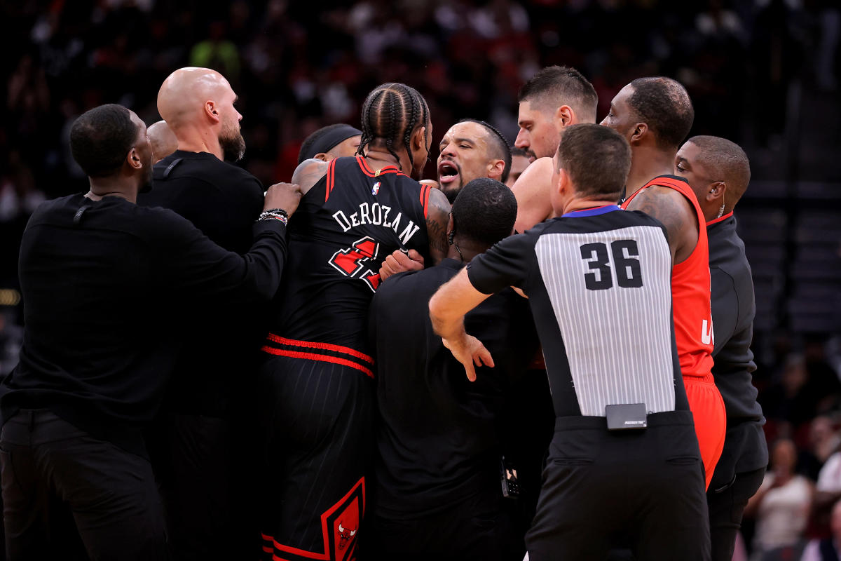 في الشجار الذي أعقب ذلك ، قام ديروزان بضرب ديلون بروكس بمرفقه بعد أن اعترض بروكس على خطأ ديروزان. بعد مراجعة الفيديو، اعتبر المسؤولون أن بروكس ارتكب خطأً فنيًا وقاموا بطرده أيضًا.