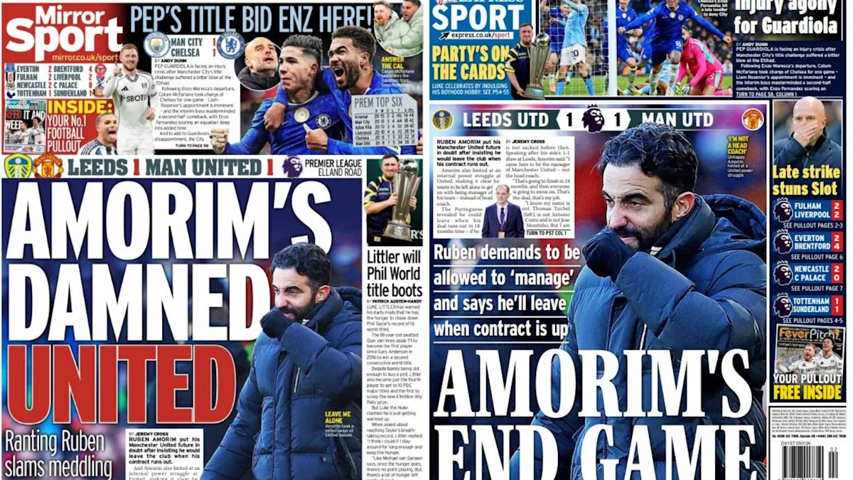 احتل التحدي الصريح الذي وجهه روبن أموريم للتسلسل الهرمي لمانشستر يونايتد بالسماح له بالقيام بعمله دون تدخل، الصفحات الخلفية من الصحف الوطنية الصادرة يوم الاثنين.