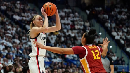 بعد مباراة بعد تسجيل الرقم القياسي المدرسي 20 رميات ثلاثية، كان UConn 6 فقط مقابل 23 من خلف القوس المكون من 3 نقاط.