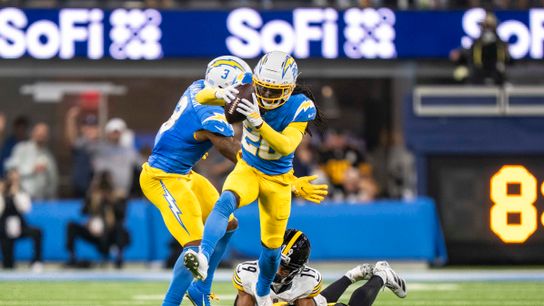 سلامة Los Angeles Chargers، RJ Mickens (27 عامًا) يدير اعتراضًا لبعض الياردات أثناء مباراة كرة قدم NFL ضد Pittsburgh Steelers في 9 نوفمبر 2025 في لوس أنجلوس، كاليفورنيا.