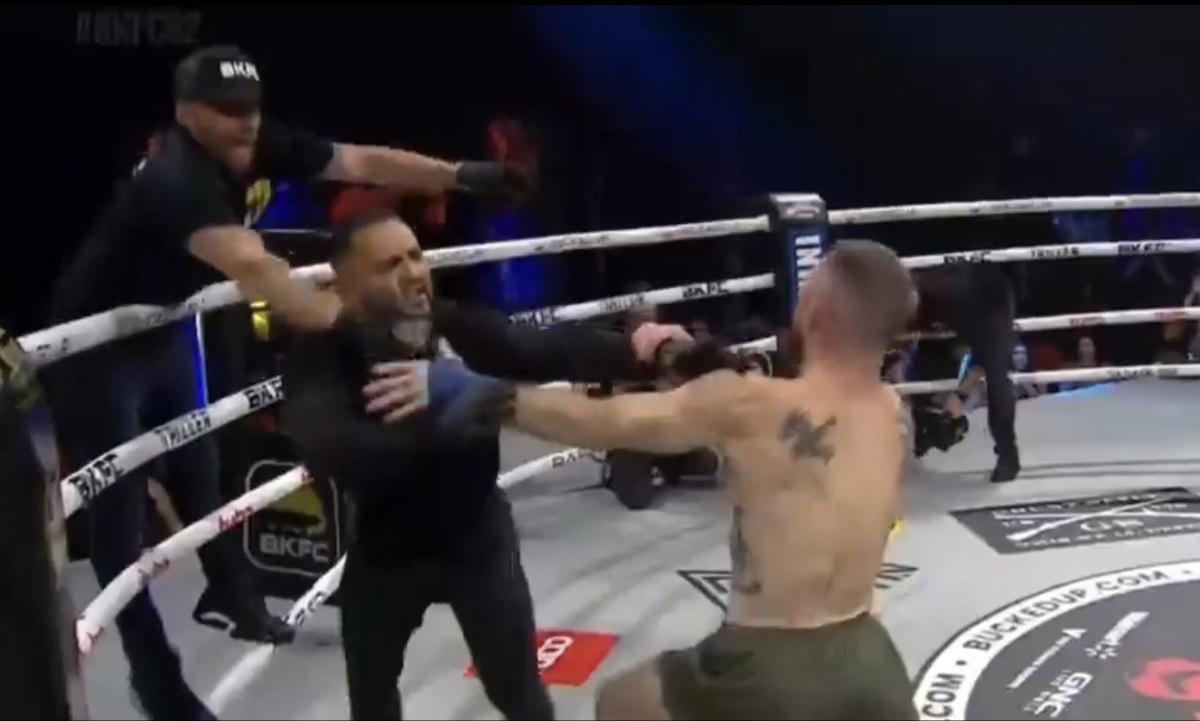 عندما تدخل الحكم Sam Burgos خلال الحدث الرئيسي المشترك لـ BKFC 62، أنهى القتال – لكنه بدأ آخر عن غير قصد.