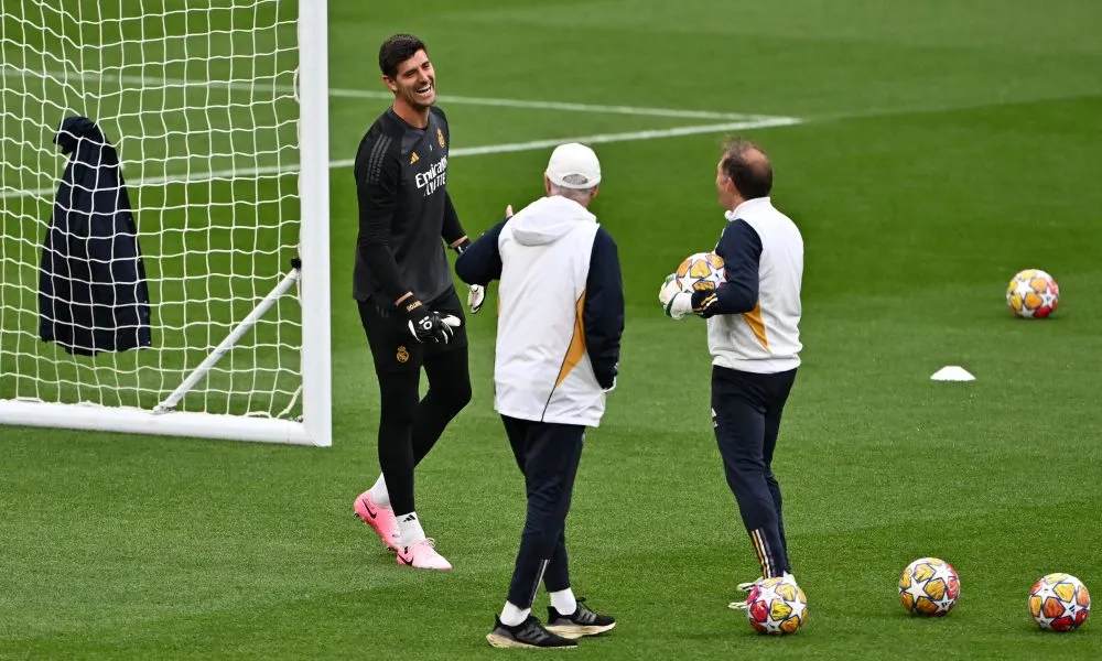 تمكن كورتوا ، الذي جلس آخر ثلاث مباريات في مدريد مع إصابة في العضلات من تلقاء نفسه ، من إكمال بعض الأعمال على أرض الملعب مع زملائه في الفريق ، مما يشير إلى التقدم.