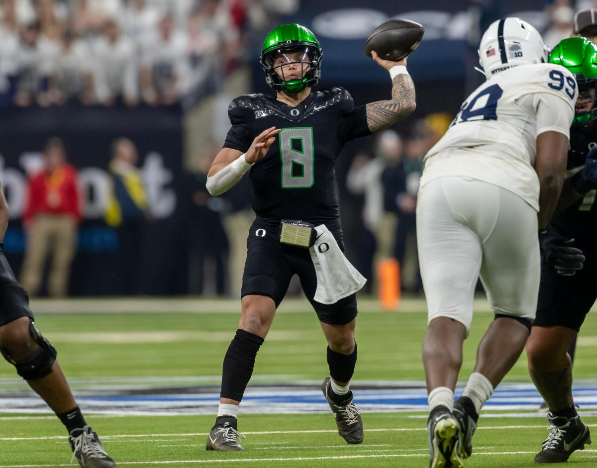 كان Oregon QB Dillon Gabriel أحد المتأهلين للتصفيات النهائية لـ Heisman بعد عام من وصول Oregon QB Bo Nix إلى نهائيات Heisman. انتقل غابرييل إلى أوريغون لموسمه الأخير في كرة القدم الجامعية بعد موسمين في أوكلاهوما وثلاثة مواسم في UCF وكان أحد أفضل لاعبي QB في هذه الرياضة. غابرييل هو 297 من 406 يمر لمسافة 3558 ياردة و 28 TDs مع ستة اعتراضات. يبلغ معدل اعتراضه 1.5% فقط ولم يسبق له أن حصل على معدل اعتراض أعلى من 2% في أي من المواسم الخمسة الكاملة لكرة القدم الجامعية التي لعبها.