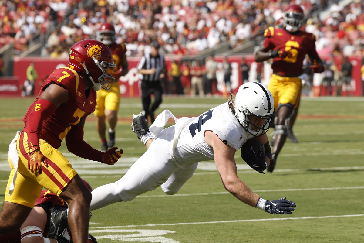 حققت النهاية الضيقة لولاية بنسلفانيا نجاحًا رائعًا في TD في الربع الثالث من مباراة Nittany Lions رقم 4 ضد أحصنة طروادة بعد أن انتقل إلى نهاية الخط ليلعب في الوسط في لعبة خدعة.