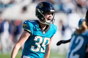 ركل لاعب فريق جاكسونفيل جاغوارز كام ليتل هدفاً ميدانياً بطول 67 ياردة في نهاية النصف الأول من طريق الفريق لفريق تينيسي تيتيانس يوم الأحد.