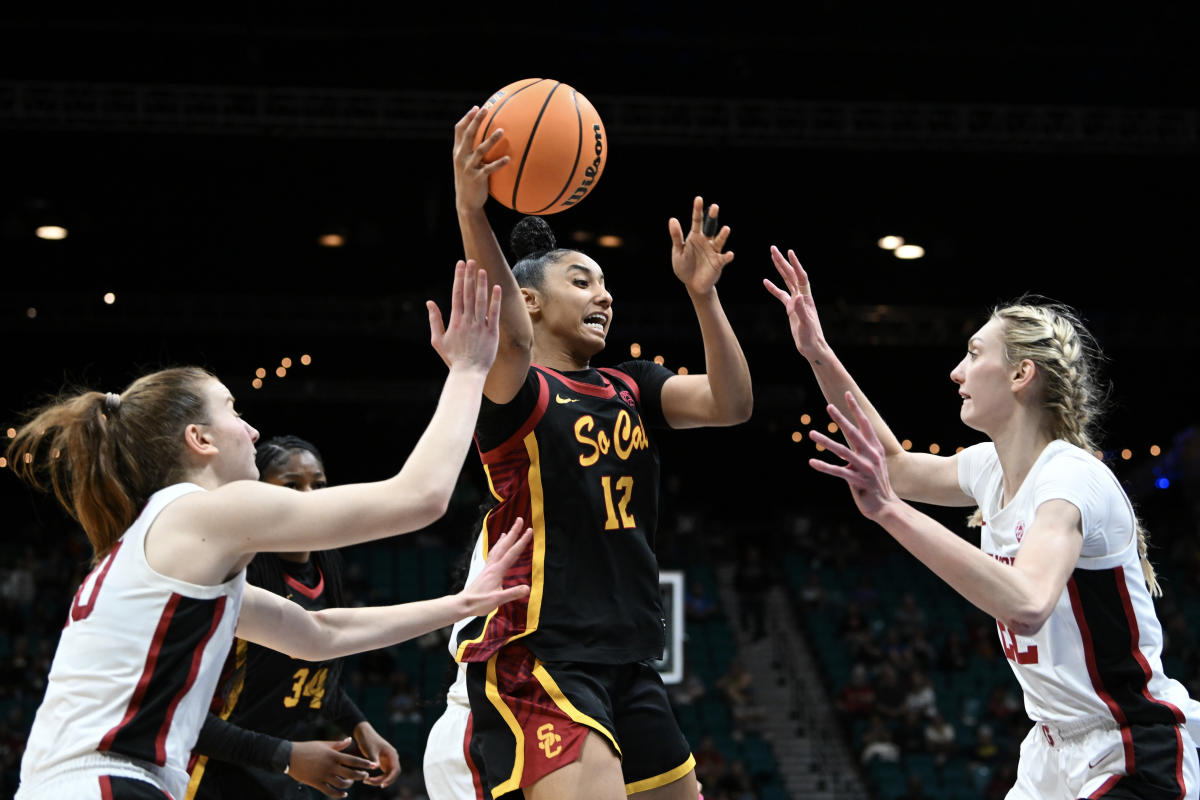“واشنطن، إنهم صبورون للغاية. قال بارنز: “إنها بطيئة جدًا”. “إنه أمر صعب اللعب. أنت تحرس مثل سبع جروح في الظهر قبل التسديدة. ثم تلعب USC، فهي مختلفة تمامًا. لديهم لاعب مفضل، لديهم JuJu [Watkins]، وهو أفضل طالب جديد في البلاد، ولديهم لاعبين رياضيين حولهم.