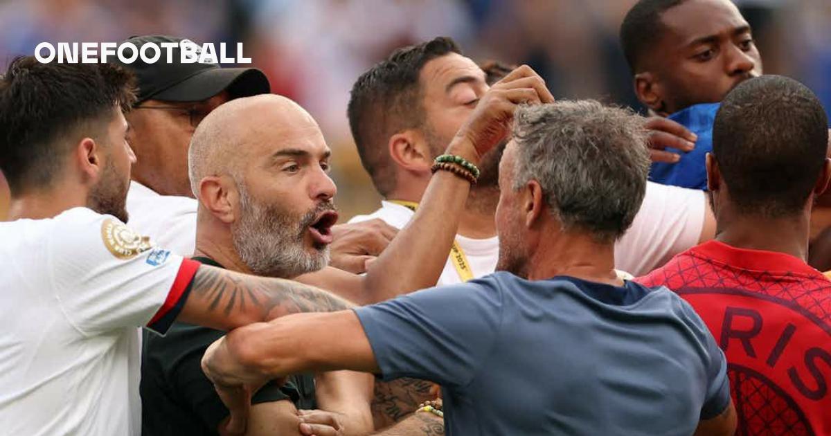 شوهد لويس إنريكي على اتصال مع جواو بيدرو (23) خلال حجة بين مهاجم تشيلسي وحارس مرمى PSG جيانلويجي دونارومما (26). يبدو أن اللقطات تظهر أن المدير يمسك وجه جواو بيدرو ويتلامس مع رقبته. ثم سقط المهاجم على الأرض.
