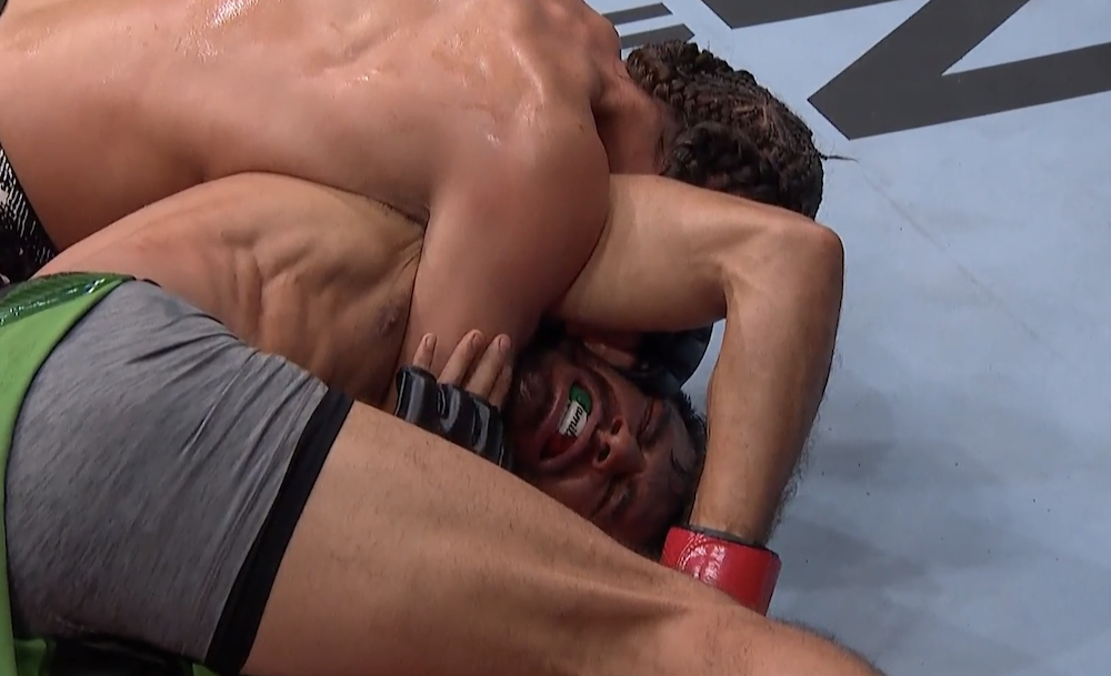 بريان أورتيجا تغلب. يائير رودريغيز عن طريق التقديم (خنق مثلث الذراع) – الجولة الثالثة، 0:58