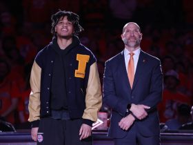 “آه، لن أجيب على ذلك. “أقدر ذلك،” أجاب جيمس عندما سئل عما إذا كانت هذه الليلة – وهي ليلة مليئة بالمشاعر، غارقة في المنافسة ومرهقة في نهاية المطاف، ستكون الأخيرة له بصفته لاعبًا في لوس أنجلوس ليكر.