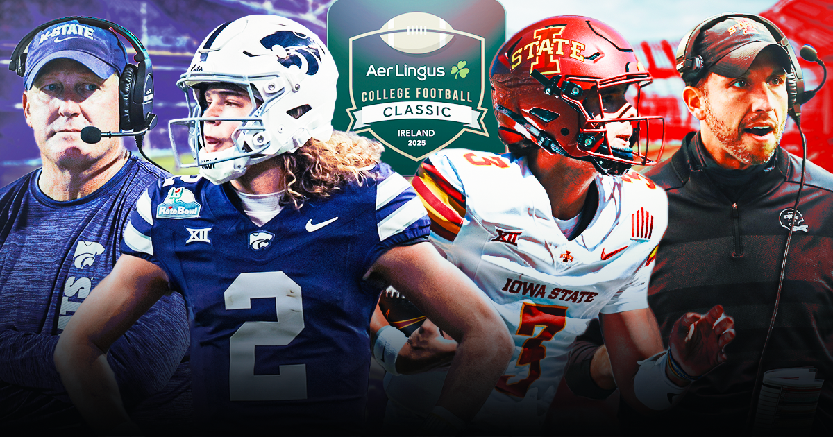 يتم افتتاح موسم كرة القدم الكلية لعام 2025 في دبلن مع مباراة كبيرة 12 مع تداعيات كرة القدم الجامعية. ولاية كانساس و ولاية أيوا يجتمع يوم السبت للوقت 109 على التوالي. Farmageddon تنطلق عند الظهر ET على ESPN.