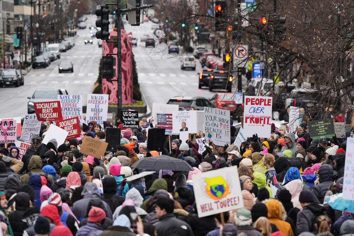 واحتشد المتظاهرون في الساحات حول واشنطن قبل المسيرة، وقرعوا الطبول ورددوا الهتافات تحت سماء رمادية وفي ظل رياح باردة.