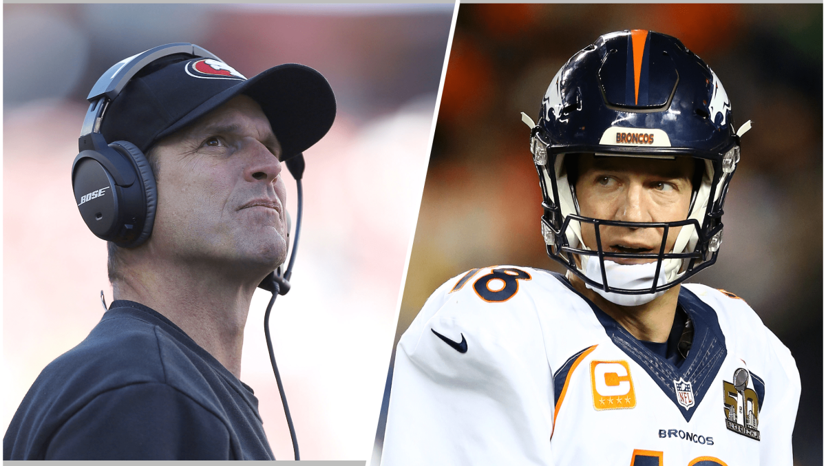 بينما نجح Harbaugh في إحياء مسيرة Alex Smith المهنية بعد وصوله إلى سان فرانسيسكو في عام 2011، كان المدرب منفتحًا على فكرة استبداله بلاعب وسط أكثر ديناميكية. وقع مانينغ في النهاية مع Denver Broncos، ومع ذلك، وتولى Colin Kaepernick في النهاية مسؤولية فريق 49ers تحت المركز وقادهم إلى Super Bowl XLVII.