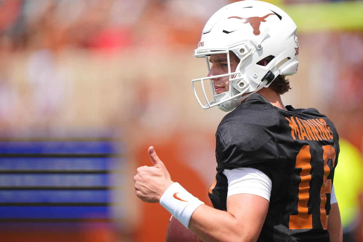قدم آرتش مانينغ لمشجعي تكساس وعشاق كرة القدم الجامعية نظرة جذابة يوم السبت.