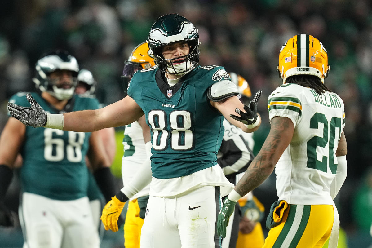 بدأ Goedert اتصالًا شمل ذراعًا صغيرة متيبسة، ثم دفع فالنتين مرتين أخريين، وضربه في وجهه، بينما كان في طريقه إلى هبوط 24 ياردة. ومن المؤكد أن تصبح ميمي.