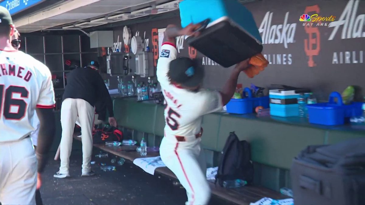 بعد التنازل عن أربعة أشواط مكتسبة خلال الشوط التاسع من فوز سان فرانسيسكو الأخير بنتيجة 13-6، أخرج دوفال إحباطاته على صندوق جليدي في مخبأ العمالقة.