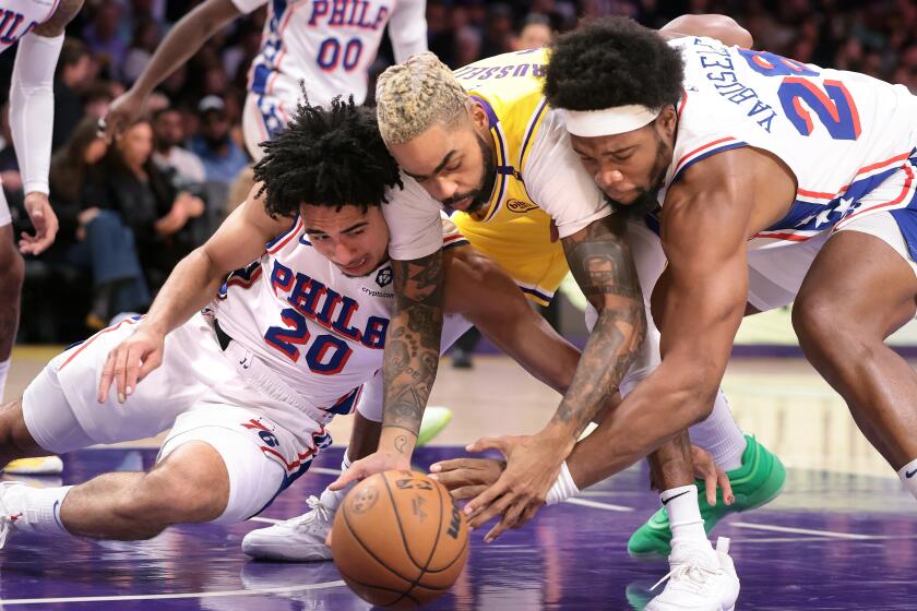 ورد دانجيلو راسل، الذي نقله جي جي ريديك إلى الوحدة الثانية لليكرز في وقت سابق من يوم الجمعة، بـ 18 نقطة على مقاعد البدلاء التي كانت في أمس الحاجة إلى لكمة هجومية وساعد ليكرز على الفوز على فيلادلفيا 116-106.