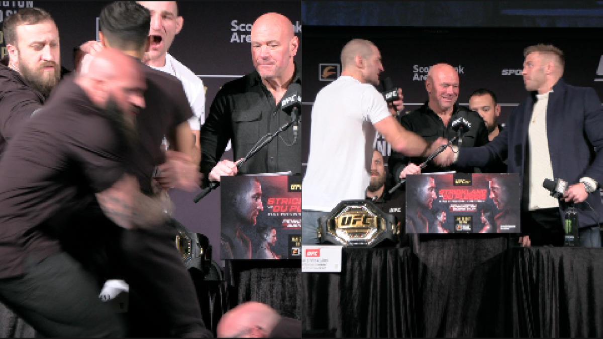 في موقف نادر، ومن المحتمل أنه لم يسبق له مثيل من قبل في مؤتمر صحفي لـ UFC، كان أحد المشجعين متحمسًا للغاية لوجوده في حضور شون ستريكلاند واندفع إلى المسرح في المؤتمر الصحفي قبل القتال لـ UFC 297 يوم الخميس لمقابلة بطل الوزن المتوسط في UFC.