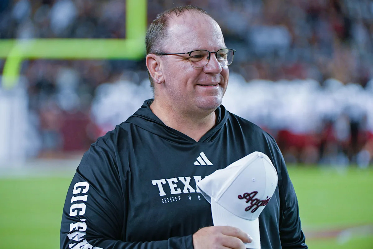 لم يكن هناك Mishap Mishap بعد أن تم تقديم مدرب كرة القدم في Texas A&M Mike Elko في SEC Media Days يوم الخميس.