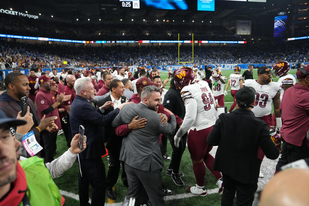 ينتقل فريق Washington Commanders إلى بطولة NFC، ولديهم اسم قوي في NBA في ركنهم – وغرفة تبديل الملابس الخاصة بهم. في يوم السبت، بينما احتفل القادة بفوزهم بنتيجة 45-31 على ديترويت لايونز، كان لديهم ضيف خاص ينضم إلى الحفل: نجم فينيكس صنز كيفن دورانت.
