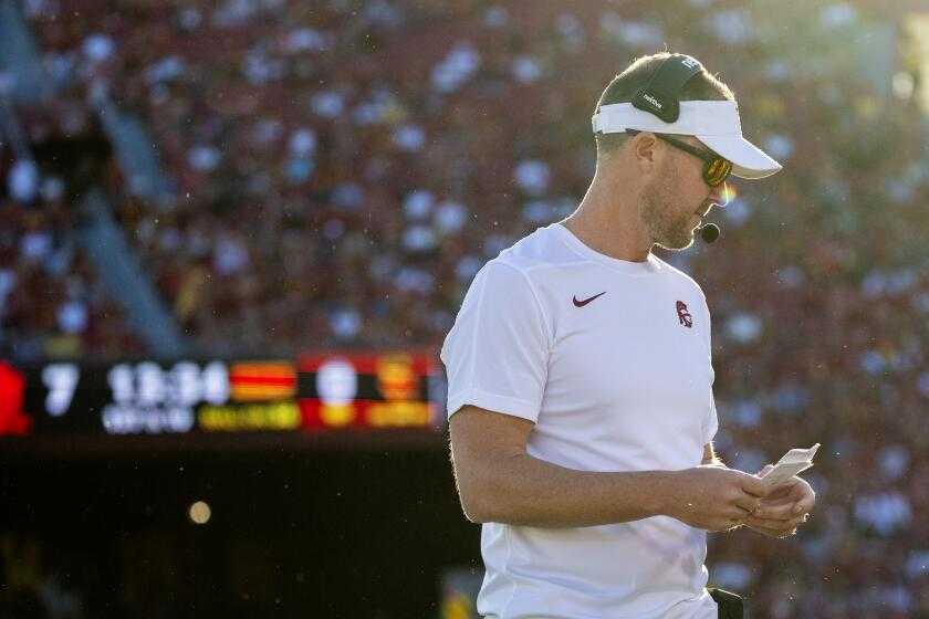 يا لهذه الضجة! يا خيبة الأمل! يقفز Plaschke من عربة Lincoln Riley بالسرعة التي قفز عليها. من فضلك المدرب القادم