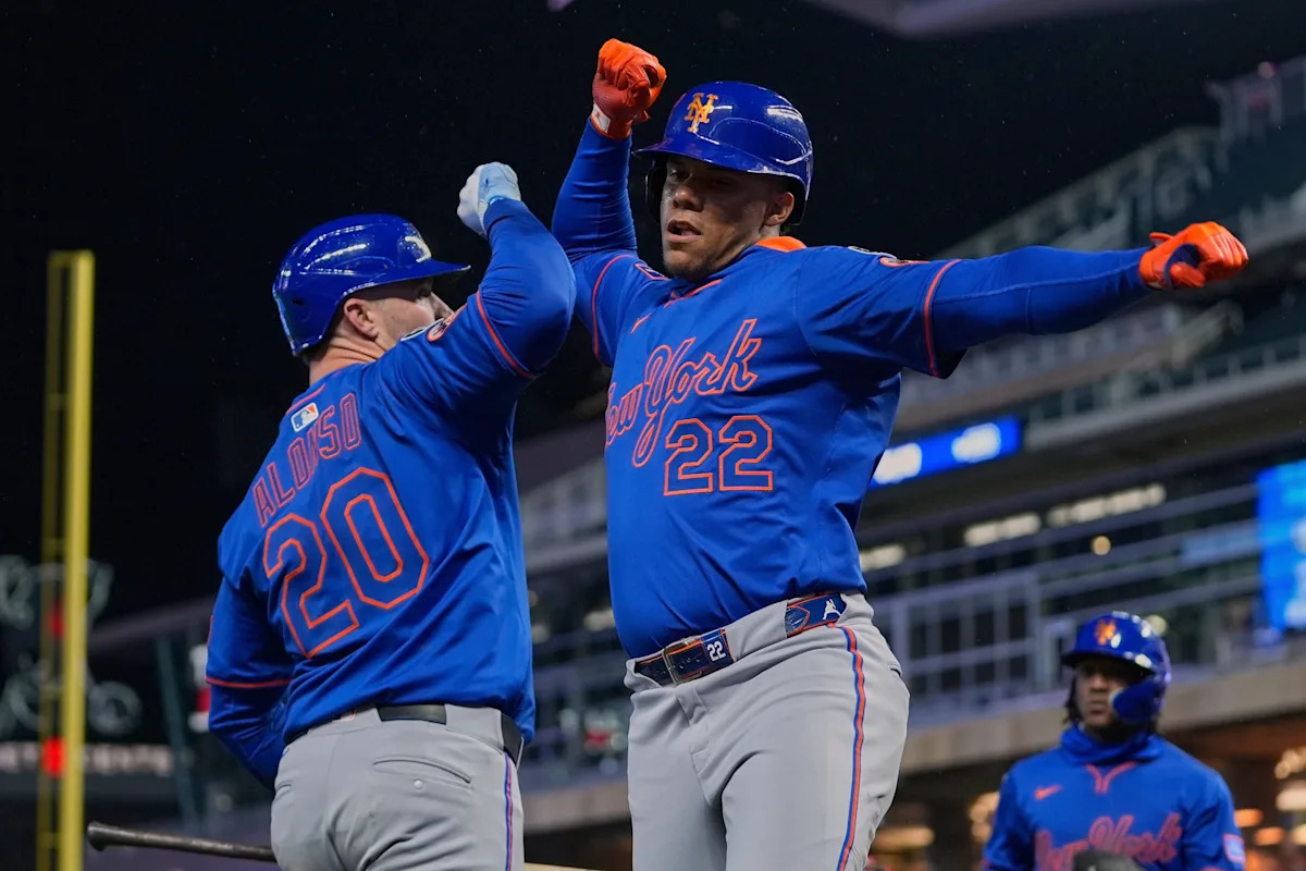 مع Up Mets 3-1 في الشوط السابع وعداء ، حفر سوتو تغييرًا من خورخي ألكالا في الصف الأمامي من المقاعد في الوسط الأيمن لأول مرة في المنزل منذ 28 مارس في هيوستن.