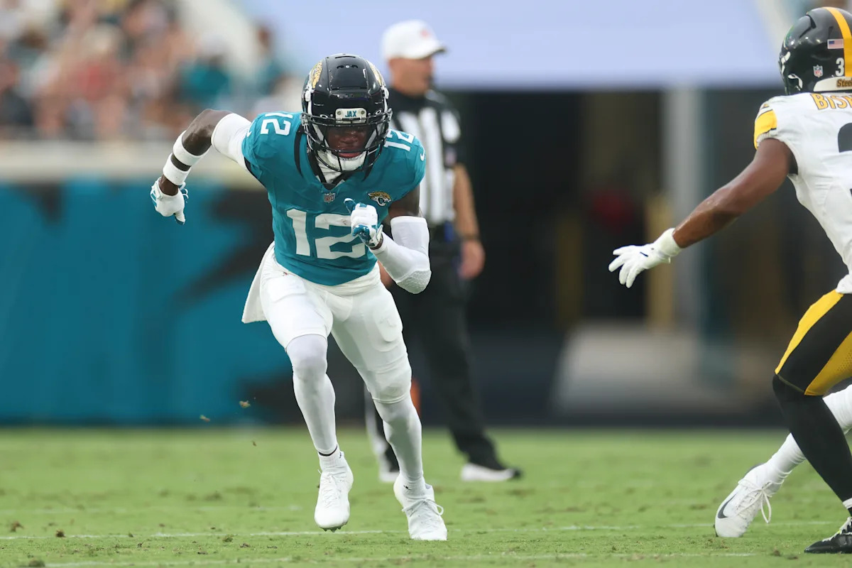 جاكسونفيل ، فلوريدا – 9 أغسطس: ترافيس هانتر رقم 12 من جاكسونفيل جاكوارز في تغطية خلال مباراة في اتحاد كرة القدم الأميركي 2025 ضد بيتسبيرغ ستيلرز في ملعب إيفربانك في 9 أغسطس 2025 في جاكسونفيل ، فلوريدا. (تصوير لوجان بولز/غيتي إيمايز)